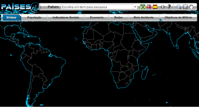 O site Países@ fornece informações sobre todos os países do mundo, agrupadas em 8 Temas principais: Síntese, População, Indicadores Sociais, Economia, Redes, Meio Ambiente e Objetivos do Milênio.